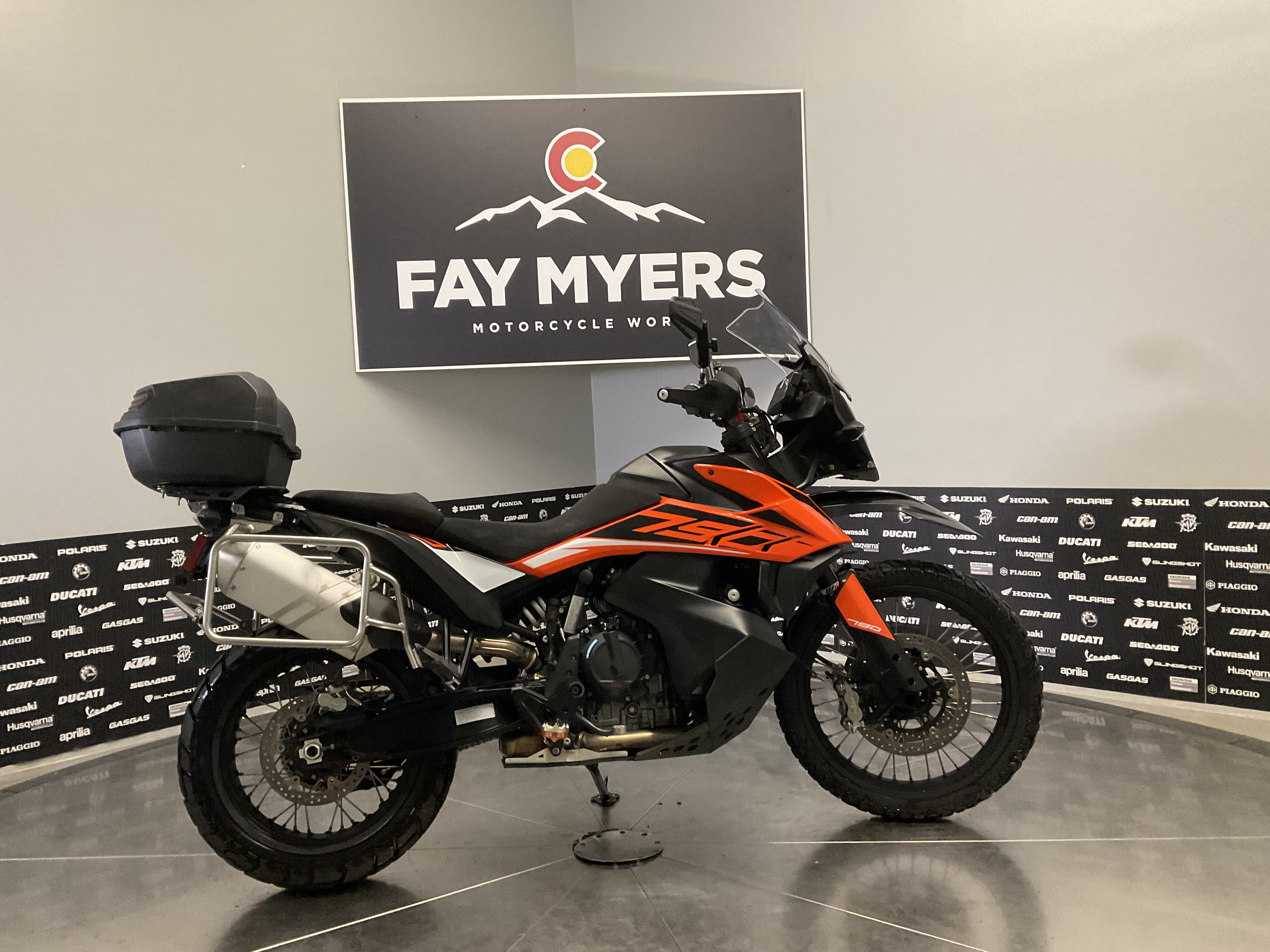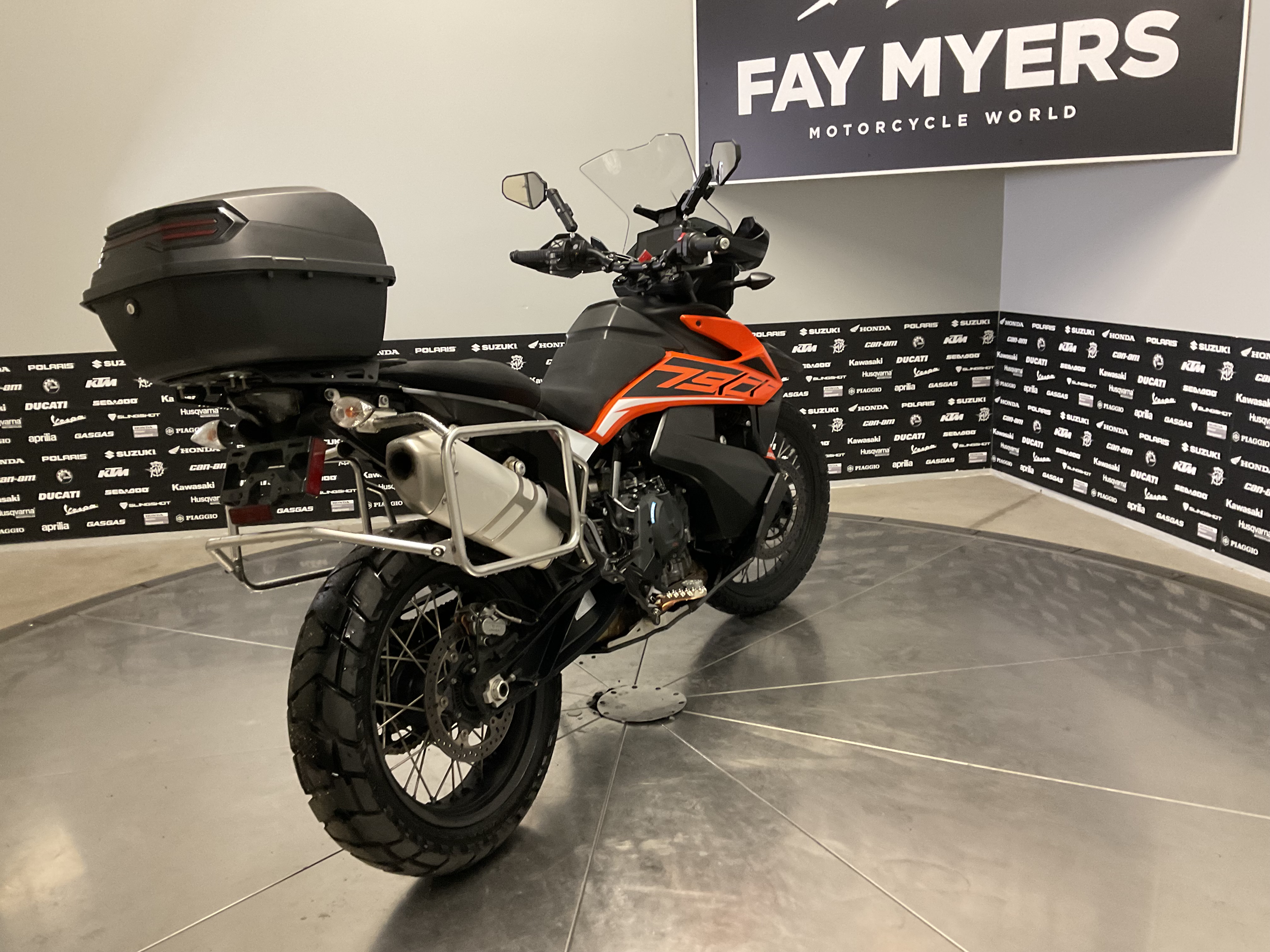 The KTM 790 ADVENTURE is a versatile motorcycle thats ready to explore further in any conditions. Its well balanced and purposeful, with sporty handling on the tarmac, and inspires confidence inspiring offroad. The advanced tubular CroMo steel frame and lightweight steel trellis subframe are engineered to be compact, but durable, to handle a full load on longer rides. A steering damper aids stability, while the heavy-duty spoked 21-inch front and 18-inch rear wheels are specifically developed for offroad riding performance.