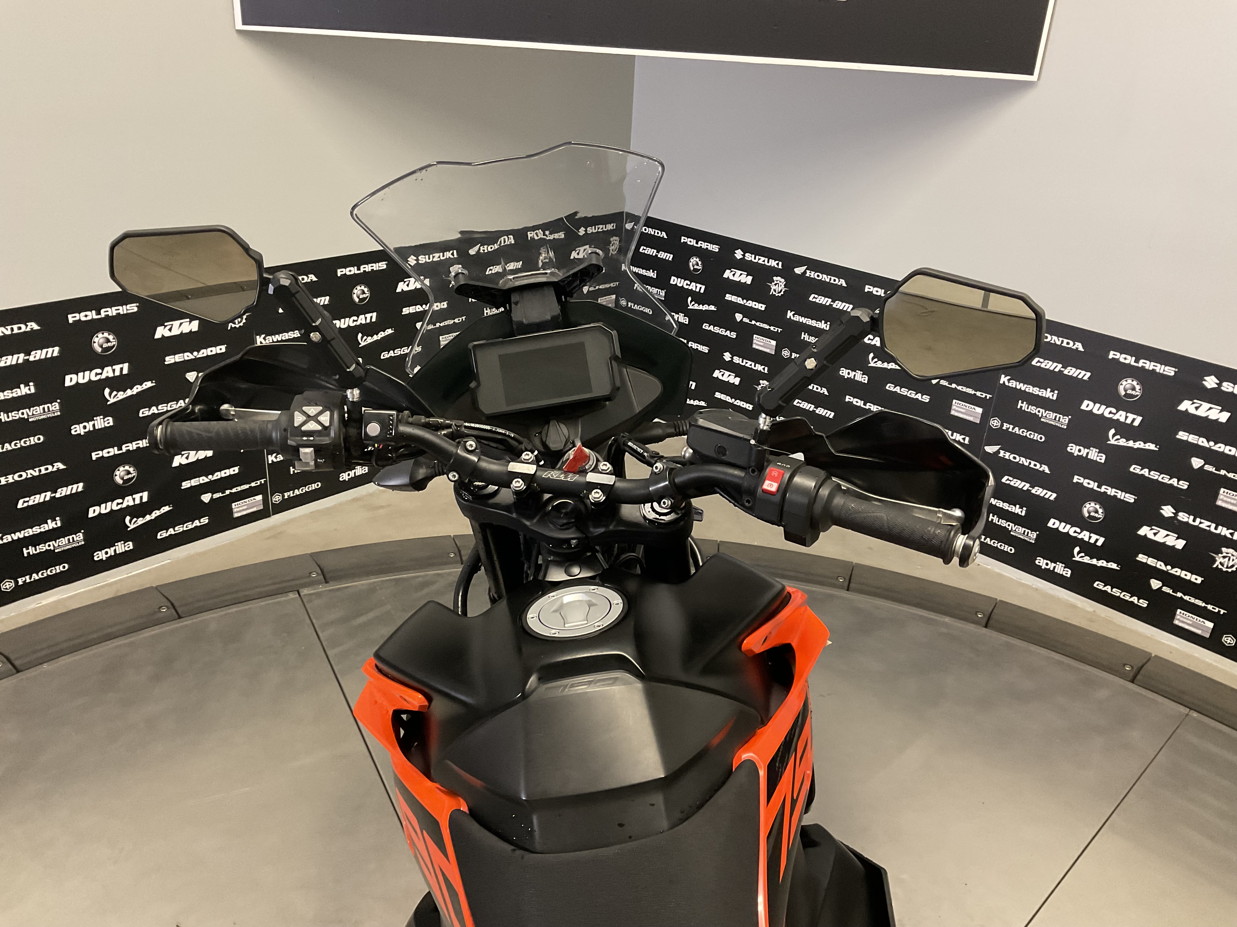 Ride modes allow the rider to adapt the behavior and feel of the engine, while KTMs lean angle sensitive traction control system (MTC Motorcycle Traction Control), reduces wheel spin based on the chosen mode or riding situation. KTMs cornering ABS system allows riders to use the full power of their brakes while taking the lean angle of the motorcycle into account. It has an advanced offroad mode that can also be turned off.