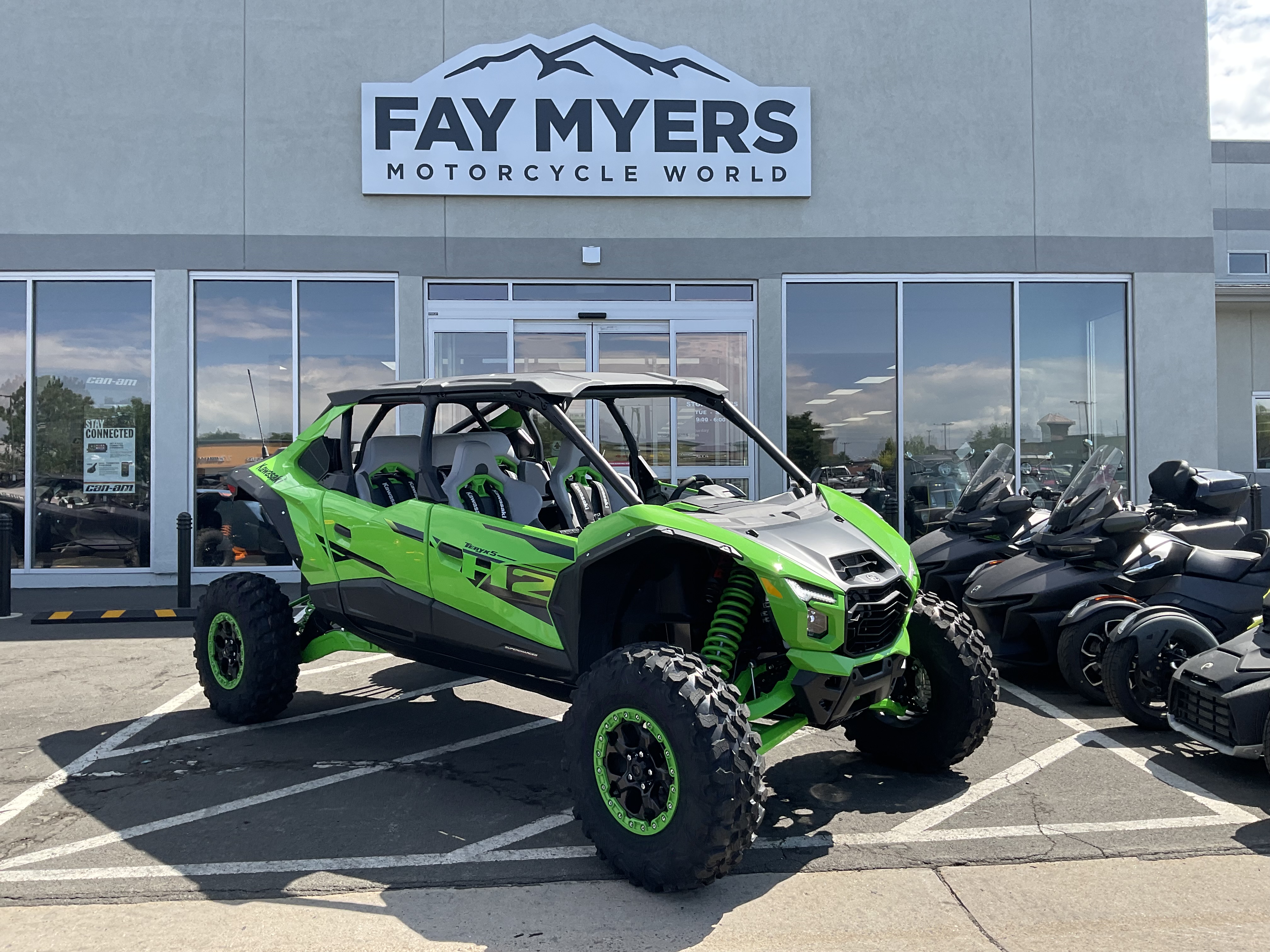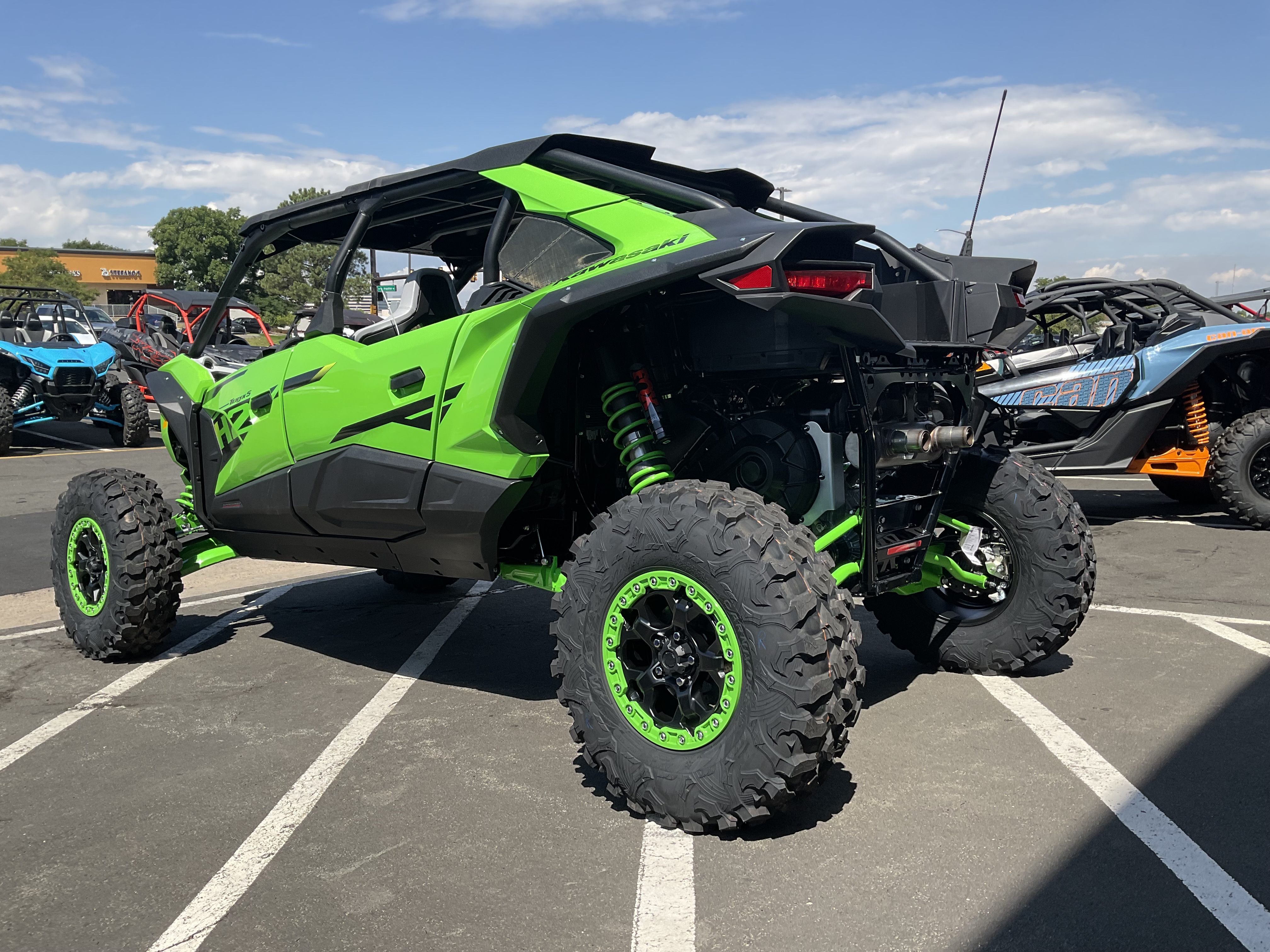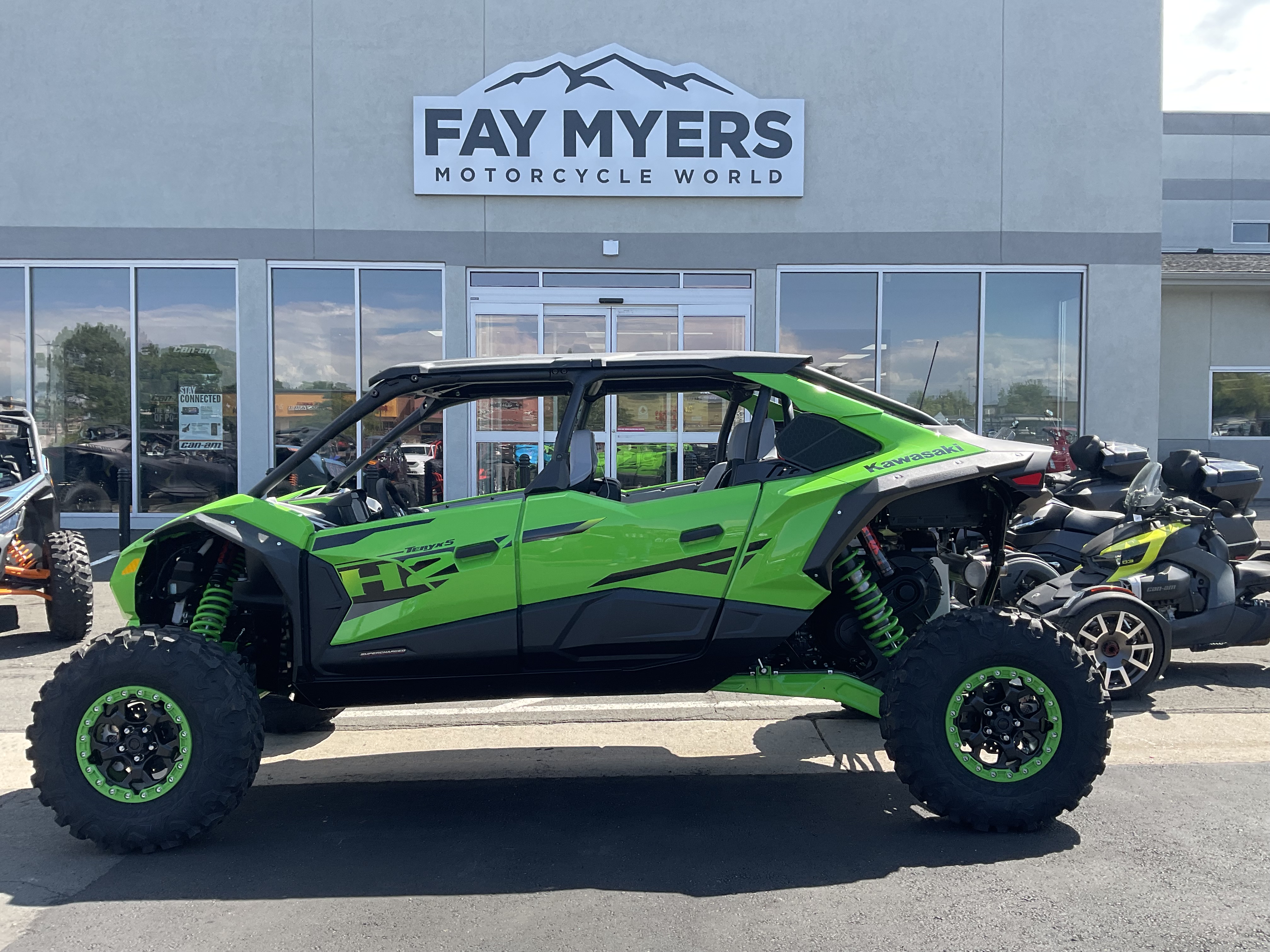 The all-new Teryx®4 H2 and Teryx®5 H2 high-performance side x sides are designed for dune and desert domination. The 250-HP¹ 999cc in-line 4-cylinder supercharged engine is harnessed by a continuously variable transmission (CVT) and a highly rigid frame complemented by long-travel suspension that helps balance the engine's massive power for maximum control. Predictable handling and confident stopping power add to the well-balanced package delivering maximum fun that can be shared with the whole family.